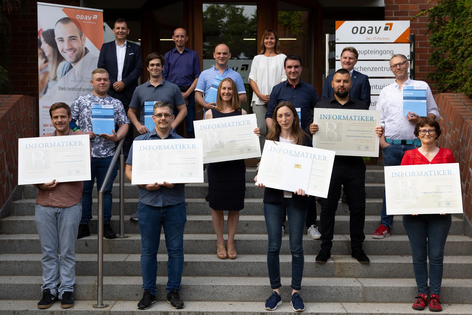 Insgesamt 11 Absolventen erhielten am Mittwochnachmittag im ODAV-Lehrinstitut von Herrn Armin Höllinger, Vorstandsmitglied der ODAV AG, und von Geschäftsbereichsleiter Jürgen Uttendorfer ihre Abschlusszeugnisse für ihre Weiterbildung im IT-Bereich. „Durch die Weiterbildung zum Betriebsinformatiker haben Sie die Basis gelegt, um als IT-Fachkraft Themen wie Digitalisierung, Industrie 4.0 und Künstliche Intelligenz mitzugestalten“ lobte Höllinger die sichtlich erleichterten Prüflinge. Von den Absolventen würden nun Verantwortungsbewusstsein, Wissen und Leistung in der digitalen Welt erwartet.